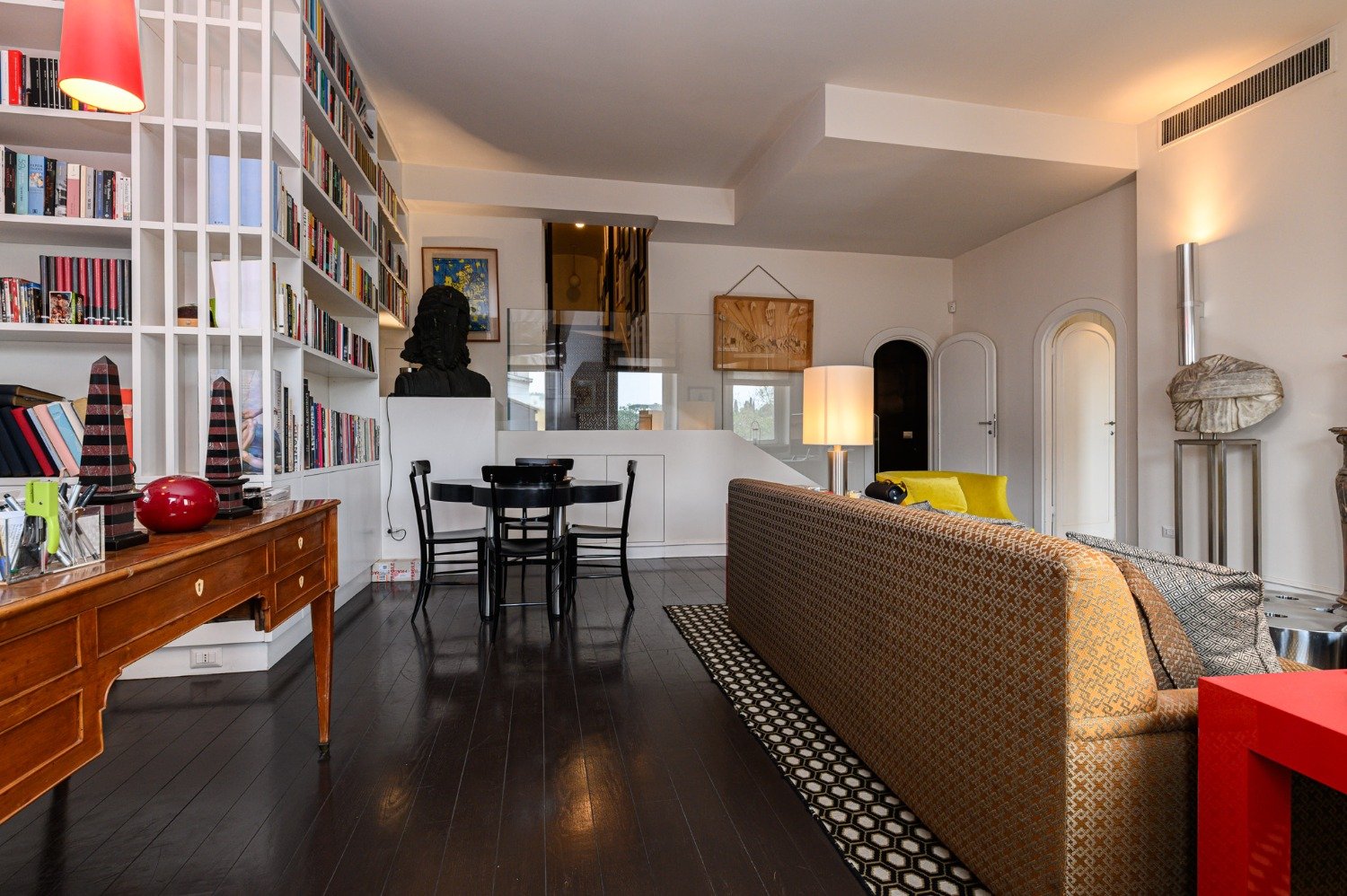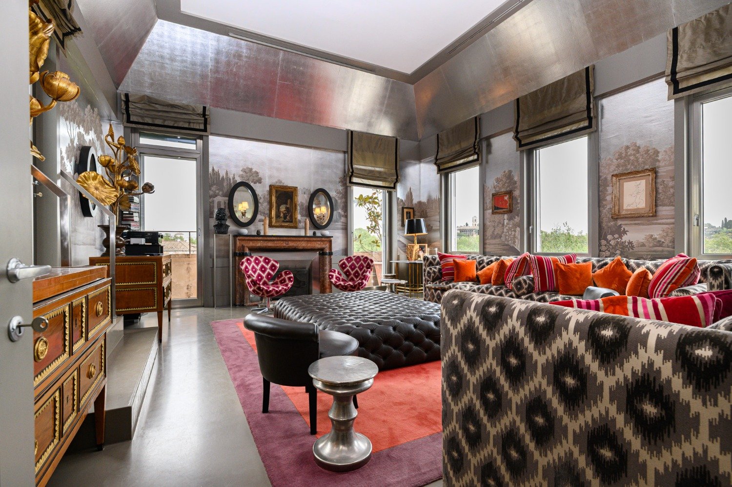 Trastevere, uno dei quartieri più iconici della capitale, precisamente Piazza In Piscinula, parliamo di un ATTICO completamente ristrutturato e disposto su tre livelli, che coniuga il fascino storico della città eterna con la vivacità della Roma contemporanea, creando un connubio perfetto tra tradizione e modernità. Lo stabile edificato nel XV secolo conserva elementi storici sia nella facciata che al suo interno, nel corso del tempo poi ristrutturato, dotato di ascensore e servizio di portierato. Questa proprietà ristrutturata in ogni sua parte e arricchita da importanti elementi architettonici, attualmente è composta da: Al primo livello troviamo un ampio ingresso, una cucina lineare, una zona living con camino e arricchita da affacci unici, due grandi camere da letto, un servizio finestrato, armadi a muro e un esclusivo balcone; Al secondo livello, comodamente raggiungibile con pochi gradini interni, troviamo una grande sala da pranzo con accesso diretto al primo dei terrazzi presenti, la camera da letto padronale con una comoda cabina armadio e bagno in suite (diviso in due ambienti servizi e zona lavello con vasca), una stanza di servizio, una lavanderia e il secondo terrazzo presente al piano; salendo un’agevole rampa di scale raggiungiamo il terzo livello dove troviamo unica nel suo genere, una meravigliosa sala cinema con camino e uscita diretta alla balconata presente a questo piano, una piccola zona living organizzata nei minimi dettagli e un confortevole servizio finestrato. Tra i vantaggi che questa esclusiva proprietà offre, ci sono gli ambienti spaziosi, l’aria condizionata, il riscaldamento autonomo, numerosi armadi a muro e spazi di servizio. Le alte portefinestre e le grandi pareti finestrate sprigionano alla casa luce naturale gran parte della giornata. Fattore di rilievo la posizione di assoluto prestigio in una delle zone più suggestive di Roma.
